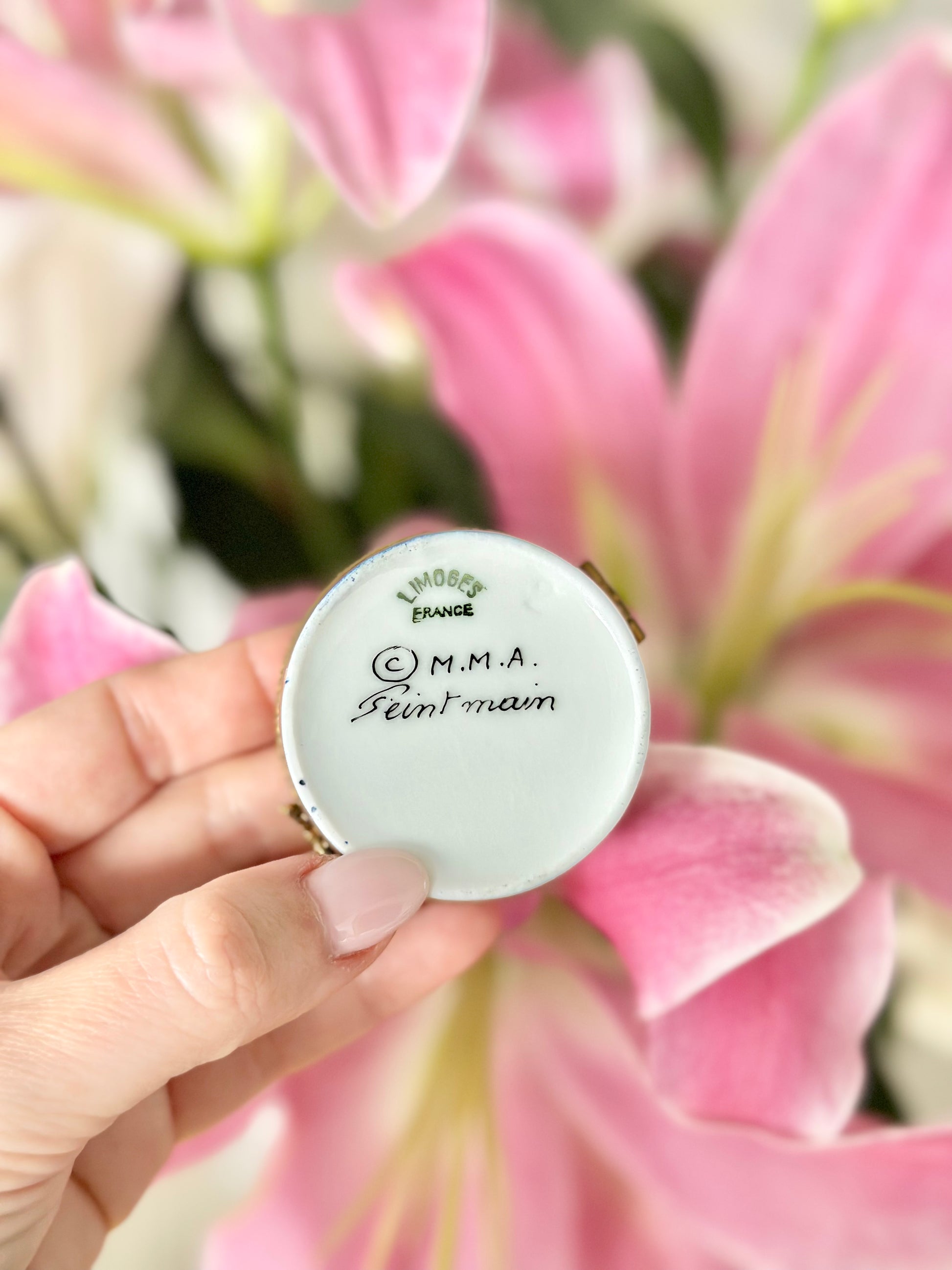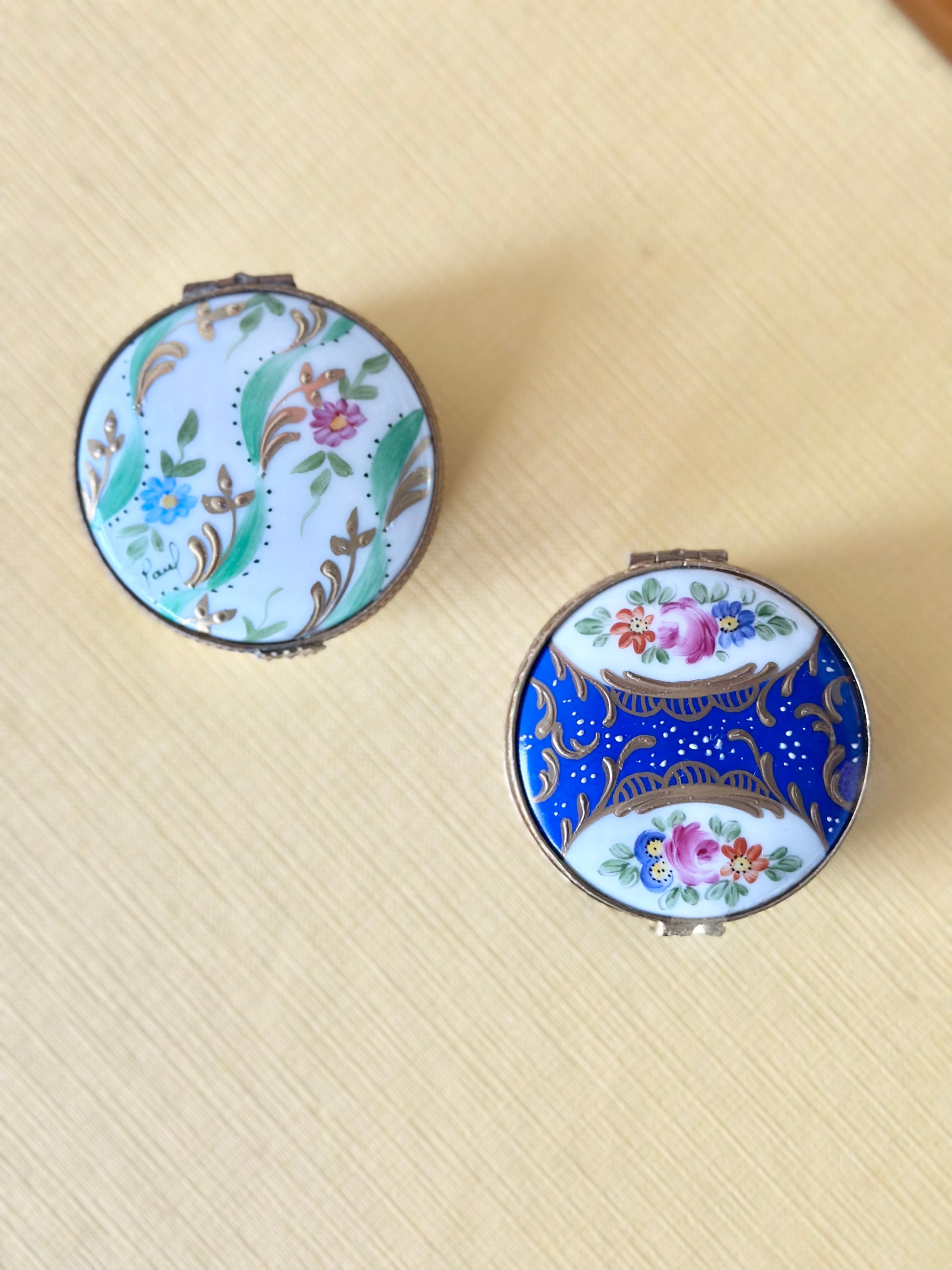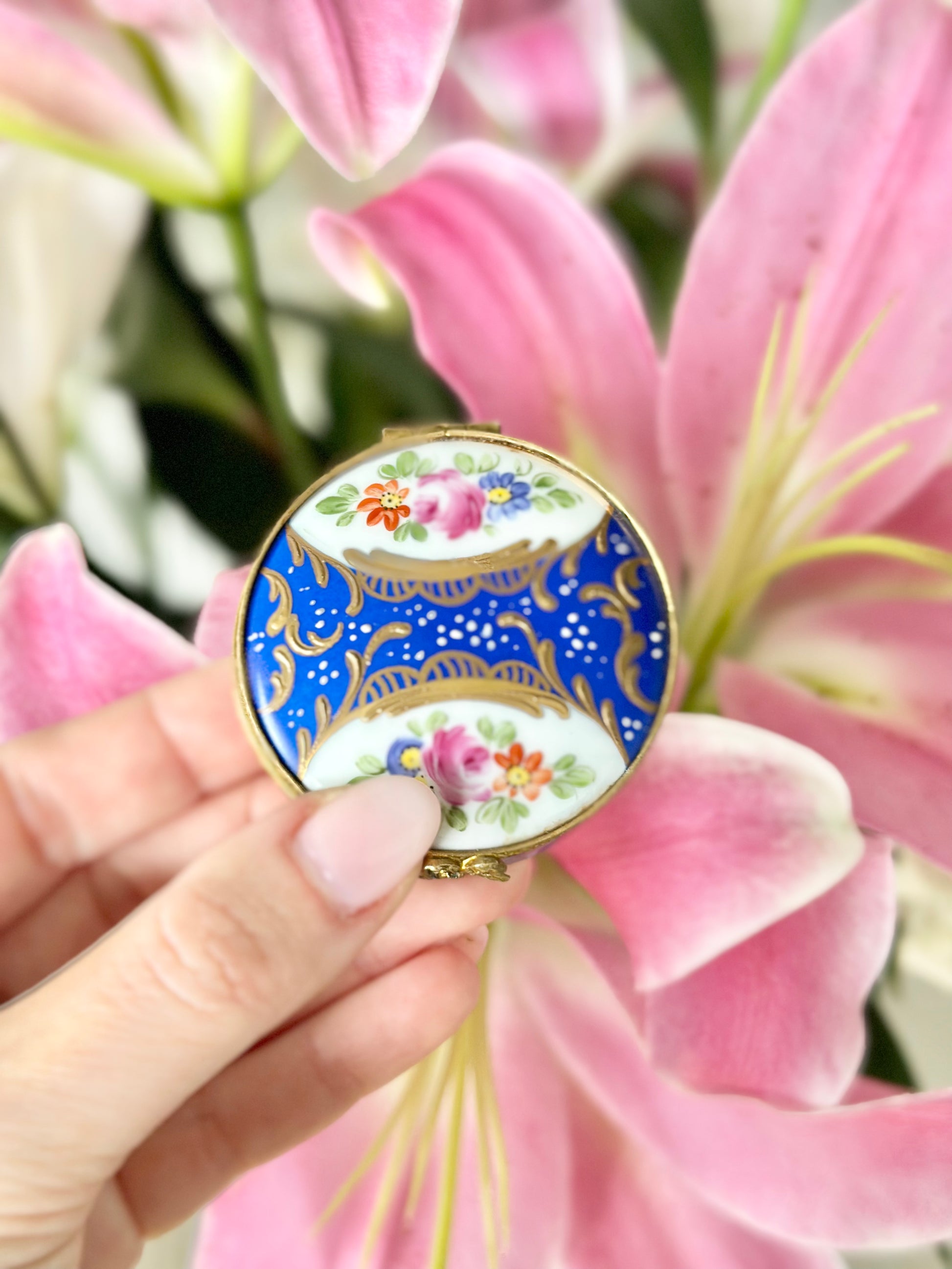 Hand Painted Blue/White/Floral/Gold Trinket Box